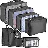 2VoniryVoniry 8 Set Packing Cubes - Waterproof Mesh Travel Luggage Packing Organizer with Shoes Bag(Black)